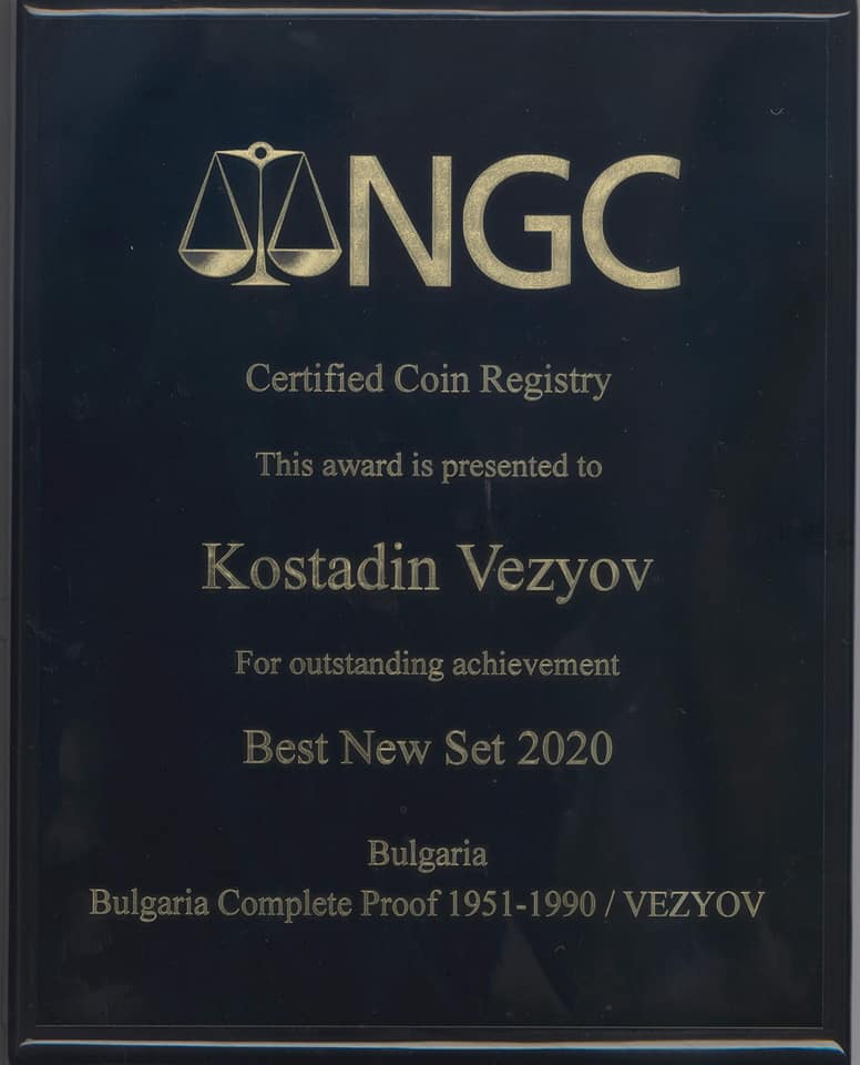 През 2020г. ще започнем с Костадин Везьов, който стана първият българин – световен първенец по нумизматика на NGC. С тази награда той завинаги записа името на България в историята на този вид световно колекционерство.